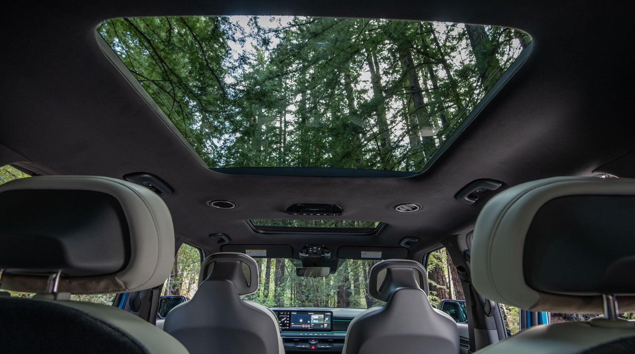 The interior of the 2024 Kia EV9 is a haven of modern luxury and technological advancement. It accommodates up to seven adults comfortably, making it perfect for families or group travel. The cabin is adorned with dual 12.3-inch touch screens, offering intuitive control over the vehicle's systems and connectivity features. The interior design is minimalist yet sophisticated, with high-quality materials and ambient lighting creating a serene driving environment. The Onboard Power Generator delivers up to 1,920 watts to power appliances and devices, perfect for outdoor adventures