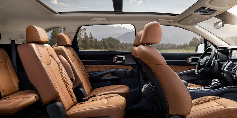 Step inside the Sorento and be greeted by a spacious and well-appointed interior, offering seating for up to seven passengers. The cabin is equipped with a large infotainment display, premium materials, and thoughtful features like tri-zone automatic climate control, heated seats, and a wireless charging pad, providing a comfortable and connected driving experience.